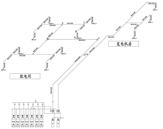 該工程為某商業(yè)大廈地下二層氣體消防工程,首先明確建筑物本身的建筑特點和功能特點,了解該建筑地下二層的防火工程設(shè)計中其它專業(yè)的設(shè)施及對消防專業(yè)的設(shè)計要求,然后根據(jù)有關(guān)規(guī)范對建筑物定性,確定系統(tǒng)的總體結(jié)構(gòu)。按照氣體滅火設(shè)計規(guī)范,該樓層配電房、發(fā)電機房、油庫不能應(yīng)用水噴淋滅火系統(tǒng),因此選用氣體滅火系統(tǒng)方案,以確保消防滅火的可靠性