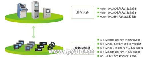 Acrel-6000電氣火災監控系統采用分層分布、開放式結構設計,主要由監控設備、監控探測器等組成。監控設備能接收來自電氣火災監控探測器的報警信號,發出聲光報警信號和控制信號,指示報警部位,記錄并保存報警信息,是系統的管理中心。監控探測器探測被保護線路中的剩余電流、溫度等電氣火災危險參數,并可直接將本地采集的信號處理為數字信號,通過標準通訊協議進行傳輸。提高了信號傳輸過程中的抗干擾能力,提升了系統的可靠性指標。