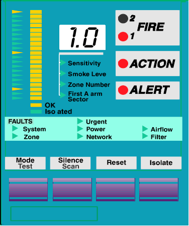●閾值指示器:以箭頭指向光柱,三個(gè)閾值燈分別表示火災(zāi)1、行動(dòng)和警告報(bào)警閾值在光柱上的位置;